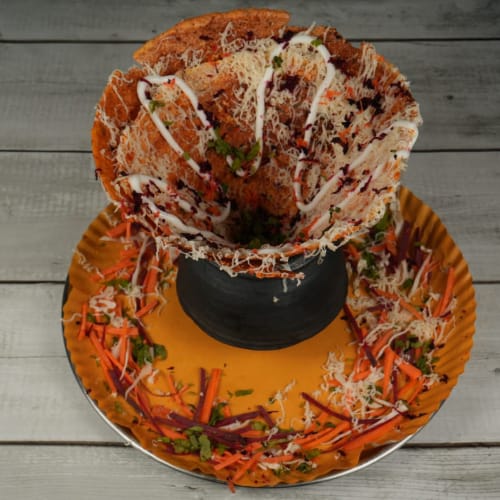 Matka Dosa is a special South Indian dosa served with flavorful masala prepared and presented in a traditional matka (clay pot) style.