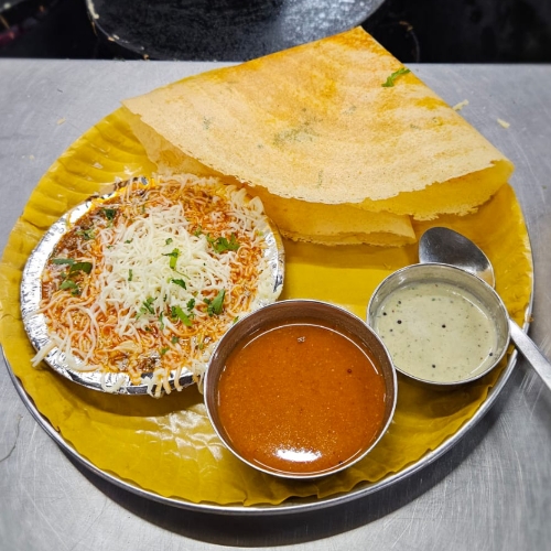 A Perfectly Crisp Mysore Dosa Layered With Authentic Spicy Chutney For A Rich Base Flavor. Filled With Freshly Prepared Spinach And Smooth Melted Cheese, It Delivers A Balanced Combination Of Taste And Texture. The Outer Layer Remains Golden And Crisp, While The Inside Stays Soft And Creamy. Each Bite Offers A Mild Spice With A Satisfying, Savory Finish. A Well-Rounded Choice For A Flavorful And Fulfilling Meal.