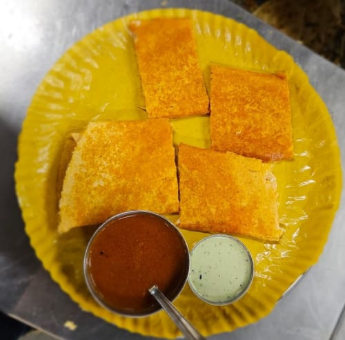 It is a long, crispy paper dosa filled with soft paneer and melted cheese.